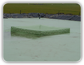 De zakken kunnen worden geleverd met een inhoud van 1000 m³. Het geheel kan door ons ter plaatse worden gemonteerd. Ter voorkoming van opwaaien te wijten aan vacuümzuiging wordt het geheel afgespannen met band en vastgezet met piketpalen.